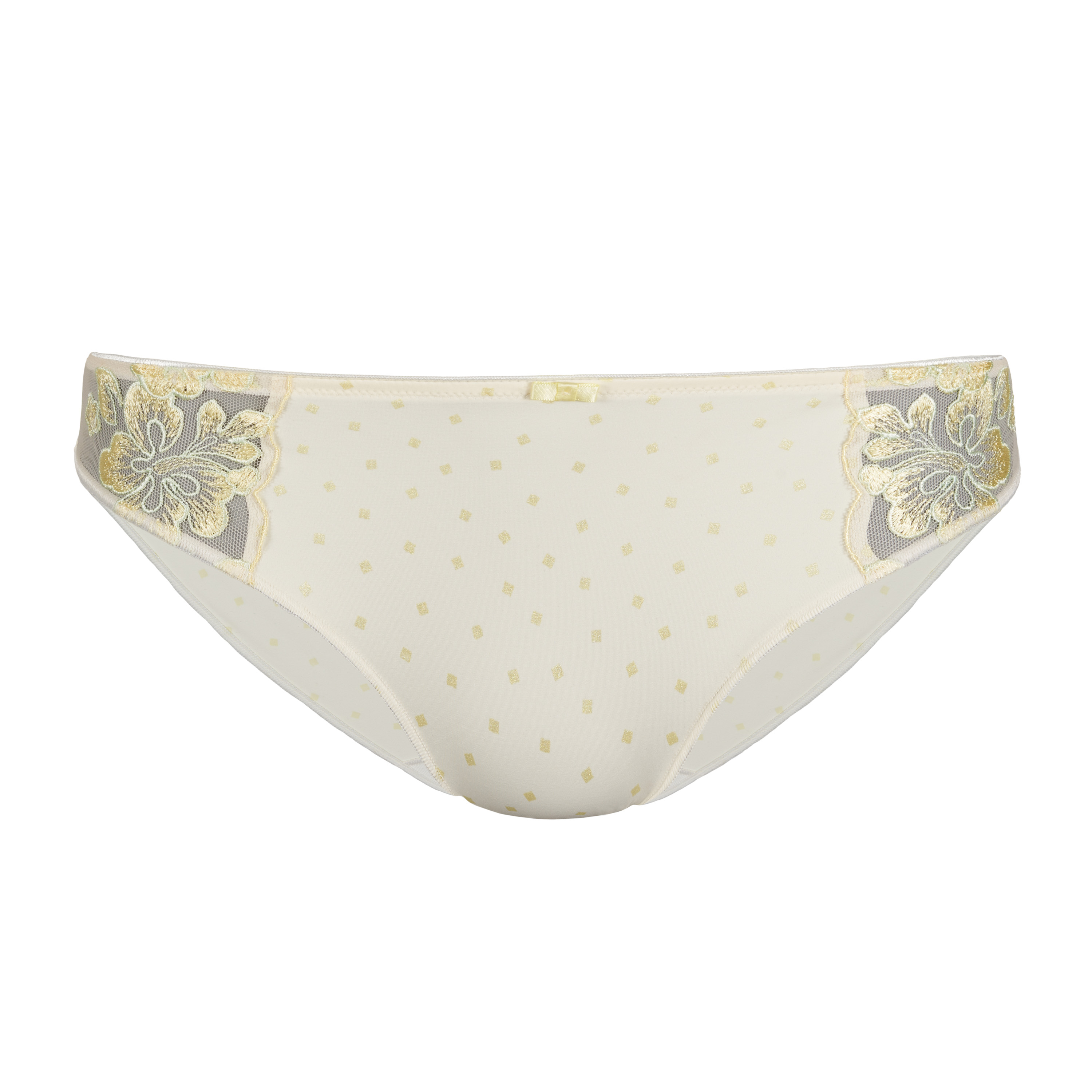 - Slip aus der Serie Prima - florale Tüllstickerei im zarten Gelb-Grün-Ton - farblich abgestimmter Satinschleife